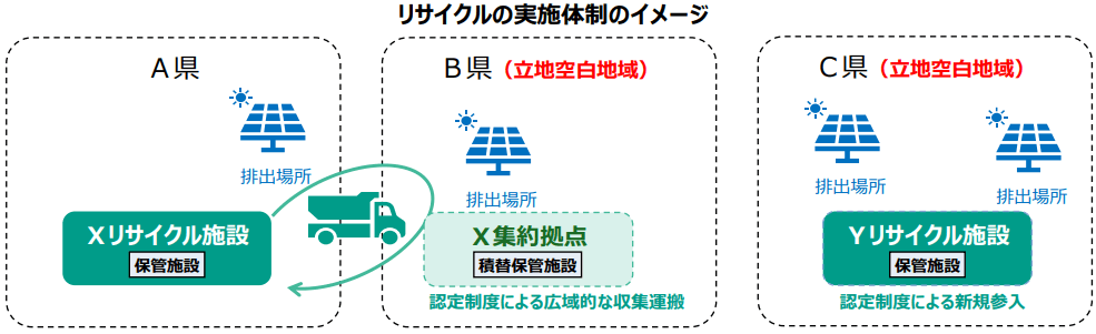 このため、一定水準以上のリサイクルを行える事業者を国が認定する制度を設け、施設が不足する地域への集約拠点の設置を促す方針とされています。