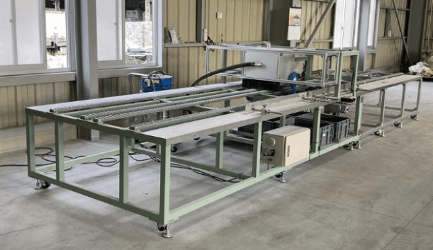 対応するため㈱高良は独自で切断機を開発、大型PVパネルの処理を可能とした。